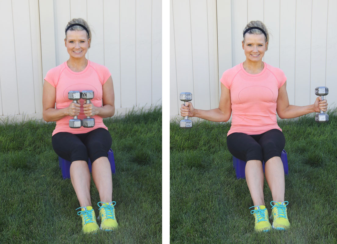 We started out sitting on the bench. We did a bunch of hammer curls…